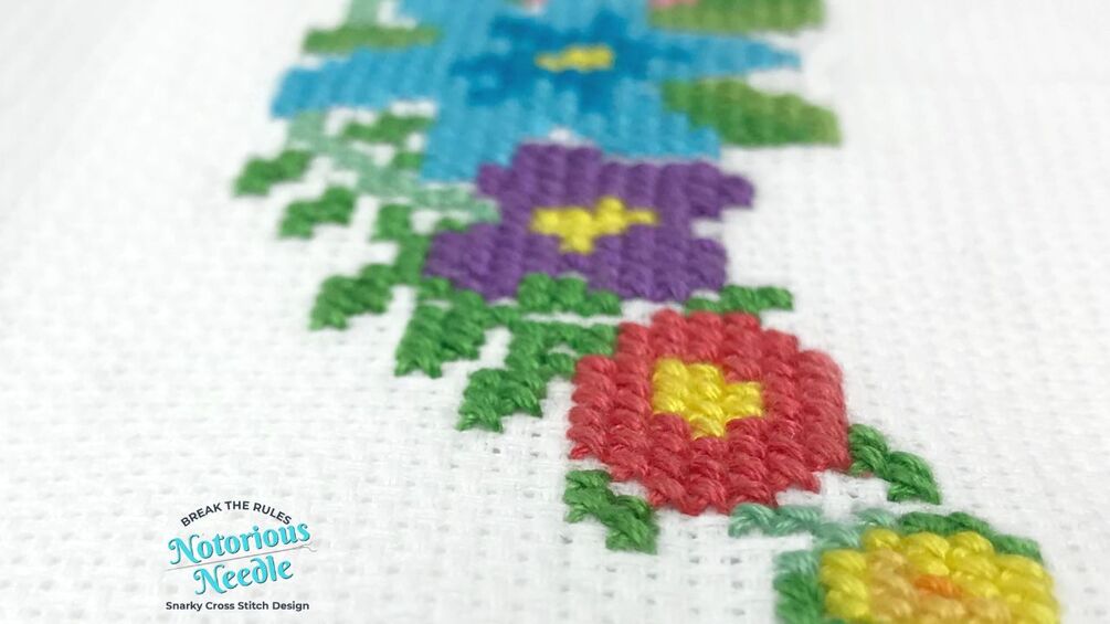 Make a snarky statement with this funny cross stitch pattern of a naughty swear word while brightening up any space with the beautiful rainbow flower wreath.
