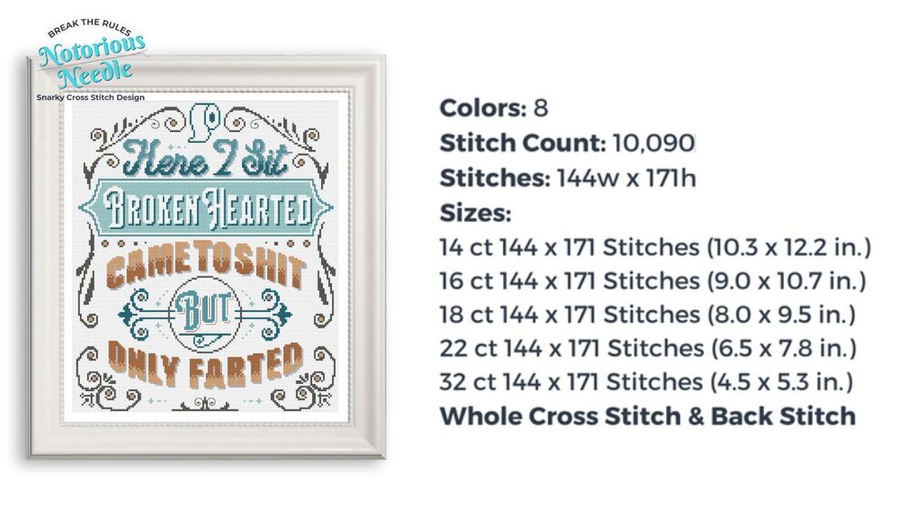 A childhood limerick come to life! Poop jokes never get old. Laugh it up with this cheeky cross stitch pattern featuring soft, blues and browns and vintage style lettering. The elegant beauty of the delicate borders juxtaposed with the rude poem is sure to spark laughter in every guest who spies it in your bathroom or toilet.