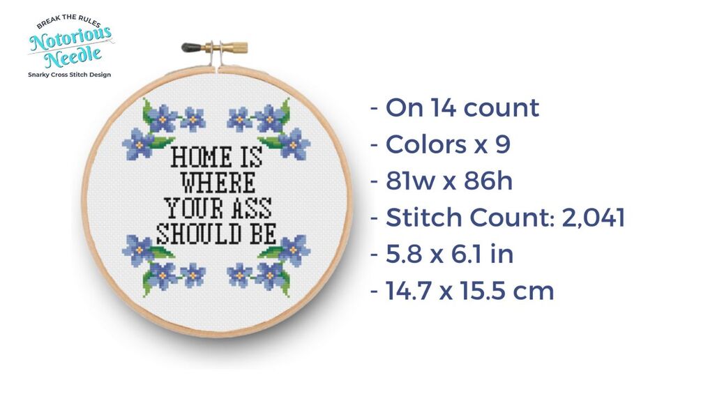Home Is Where Your Ass Should Be Cross Stitch Pattern