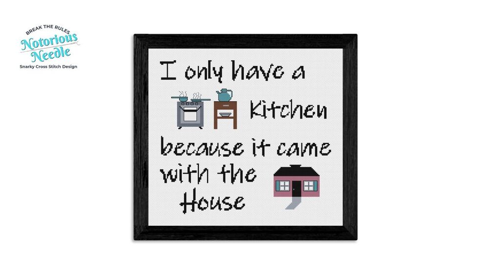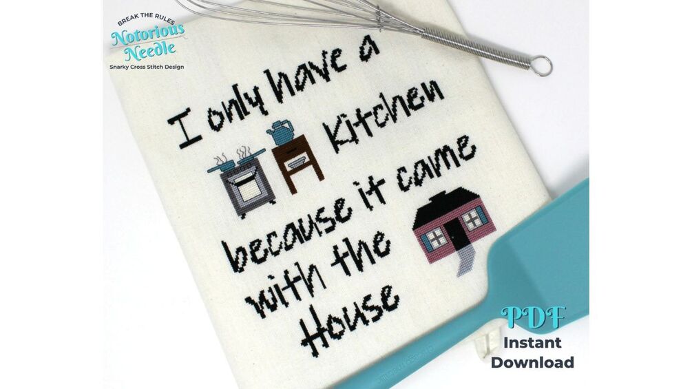 Do you avoid cooking? Or know someone who just hates eating their own cooking? lol Stitch up this pattern with the cute house and kitchenette, combined with a messy black script. Hang this funny cross stitch pattern in your kitchen, or stitch and gift to someone you love (or hate).