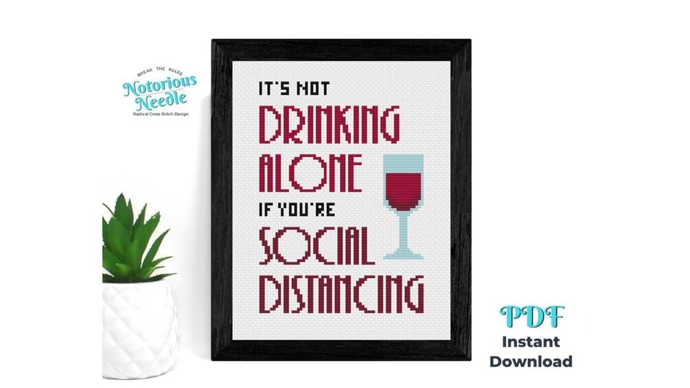 It's Not Drinking Alone with Wine Cross Stitch Pattern