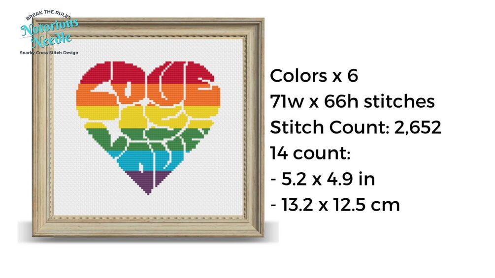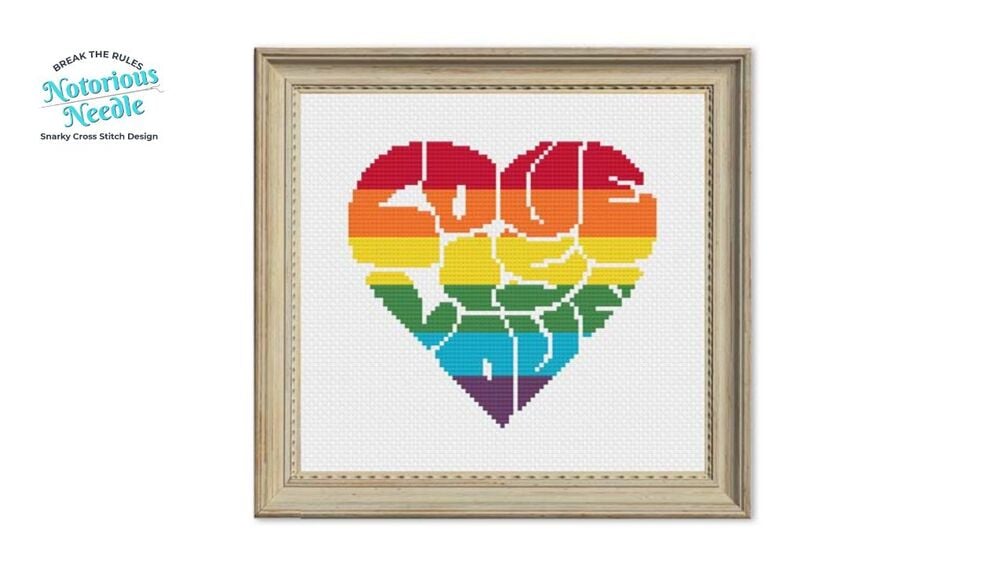 Love is Love Bubble Letters Rainbow Pride Heart Cross Stitch Pattern