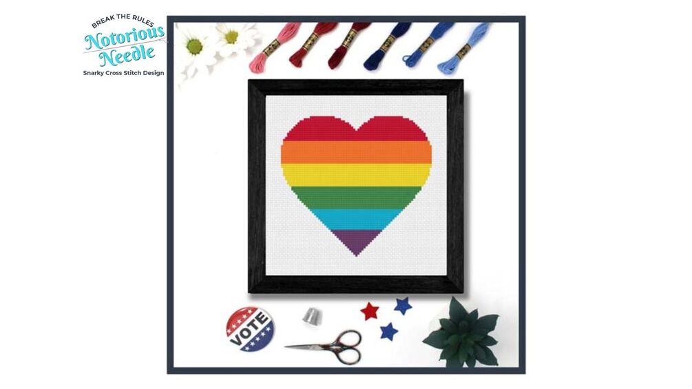 “Love is Love”, it knows no barriers and is sought by all. This pattern is inspired by the Rainbow Pride Flag representing the LGBTQ+ community: Red for life, orange for healing, yellow for sunlight, green for nature, blue for art and harmony, and violet for the soul. Spread the love as a wedding or engagement present to someone you love.