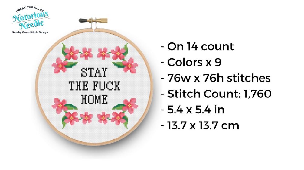 Stay the Fuck Home Cross Stitch Pattern