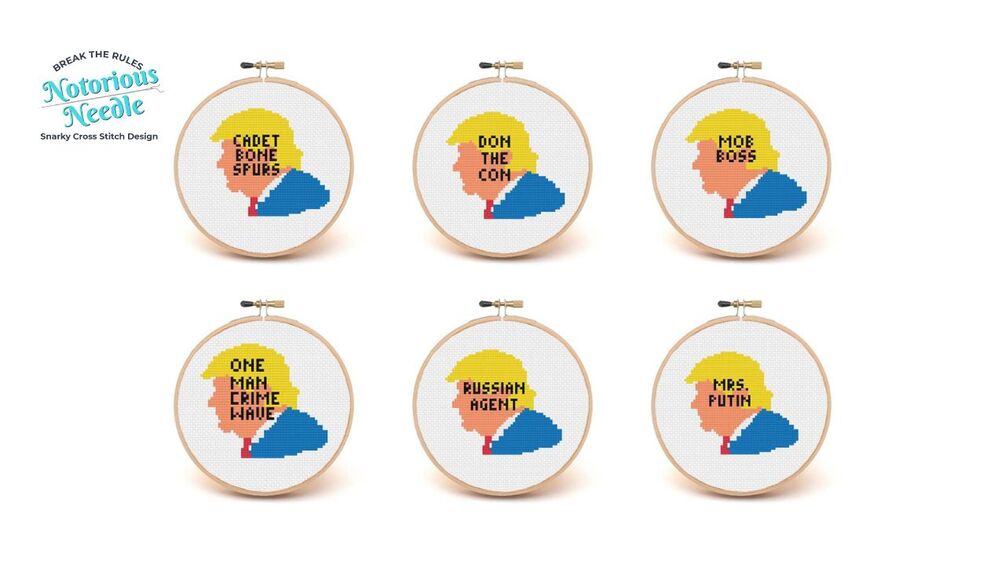 Trump has given nasty nicknames to anyone he doesn’t like. So here are 6 funny nicknames for Trump inspired by his own disgusting behavior. Stitch them on a smaller count and they could be made into a button! RESIST!