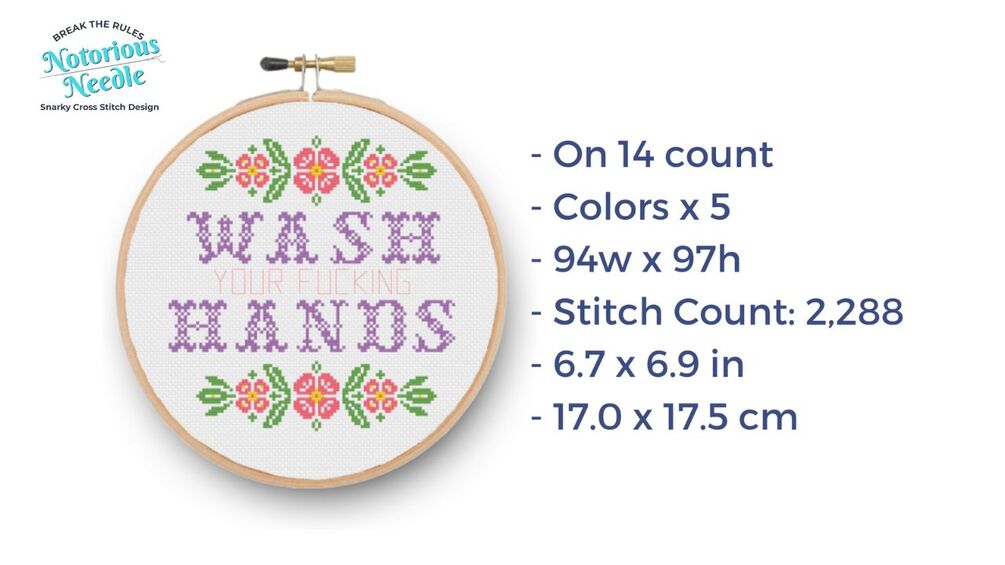 Wash Your Fucking Hands Cross Stitch Pattern